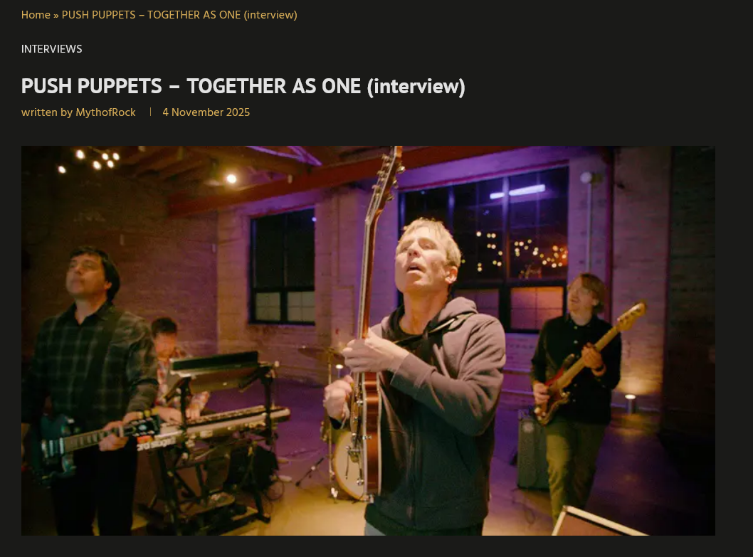 With their fourth album “Tethered Together”, Chicago’s Push Puppets are proving that smart, heartfelt pop-rock is alive and well. Led by songwriter and frontman Erich Specht, the band blend catchy hooks, lush arrangements, and genuine emotion in a way that feels classic and refreshing. In this chat with Myth of Rock, Erich opens up about the band’s evolution from a solo project to a full creative unit, the making of their new record, their love for big sounds and real strings, and what keeps the fire burning after four albums. This is the story of Push Puppets.